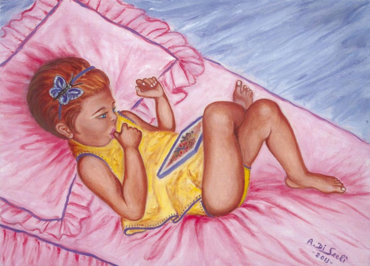 Quadro “La bimba e il tablet”